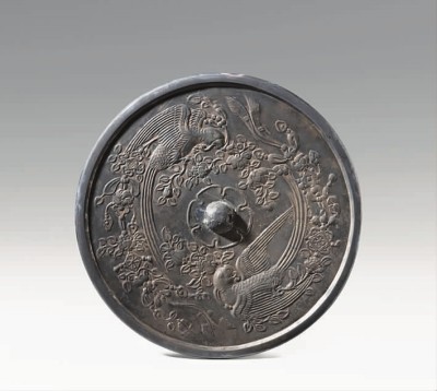 唐代鸚鵡銜枝綬帶紋銅鏡。(均資料照片)