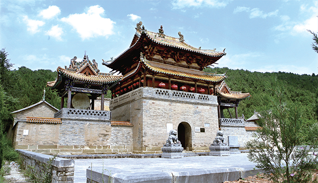 來到山門,可見寺院坐北向南。寺額初名“清涼”,宋改開化禪林,今名開化寺。寺內現(xiàn)存建筑有大雄寶殿、大悲閣、東西配殿、觀音閣、禪堂、偏院等,并有碑碣十余通??计渌聝缺?,開化寺初創(chuàng)于北齊武平二年(571年)。晚唐龍紀、大順間(889—891年),有大愚禪師就山腰鑿穴室建清涼蘭若,寺院規(guī)模已相當可觀。宋天圣八年(1030年)改額為開化寺。宋熙寧六年(1073年)重建大雄寶殿。宋元祐、紹圣年間(1086—1098年),再次興工,繪制大雄寶殿內壁畫。金皇統(tǒng)元年(1141年)建觀音閣。元明清各代,屢有修葺,始成今日規(guī)模。