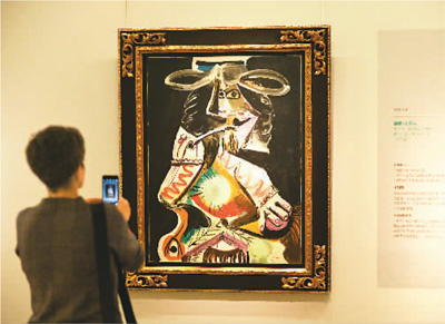 圖為觀眾在中國美術(shù)館參觀畢加索的作品《抽煙斗的男人》。