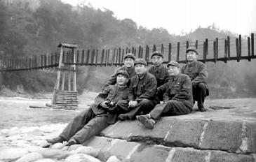 王愿堅(jiān)(后排左一)與陸柱國(guó)(后排中)在都江堰。(攝于1972年10月) (本文圖片均為資料圖片)