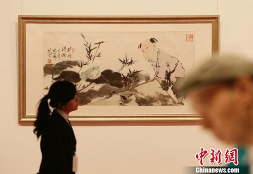 資料圖:范曾作品《荷塘清趣》亮相世界華僑華人美術(shù)書(shū)法展。中新社發(fā) 李慧思 攝