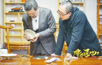張國(guó)立、張鐵林在真人秀節(jié)目《非凡匠心》中親手鋦瓷