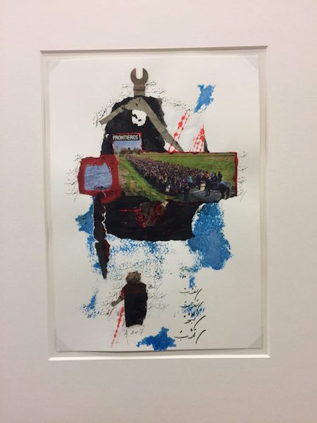 阿多尼斯寫詩有60多年,藝術(shù)創(chuàng)作還只是最近十幾年的事。 他在晚餐桌上告訴我他是怎么開始辦畫展的趣事。他用謙虛的口吻說,他本來只是自得其樂,腦子累了,畫畫作為一種放松。有一天巴黎一個開畫廊的朋友來他那里做客,看到這些拼貼藝術(shù),問是誰的,阿多尼斯說是一個朋友畫的,畫廊朋友說特別喜歡,阿多尼斯便和他約好和藝術(shù)家見面。那天到了,畫廊朋友來了,阿多尼斯就拿出他的一些作品讓他看,看著看著,他問藝術(shù)家在哪里,最后才知道阿多尼斯就是那個藝術(shù)家。
