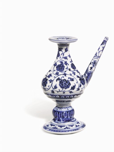 去年于香港拍出9932萬(wàn)港元的明永樂(lè)青花纏枝牡丹紋凈水瓶。(均資料照片)