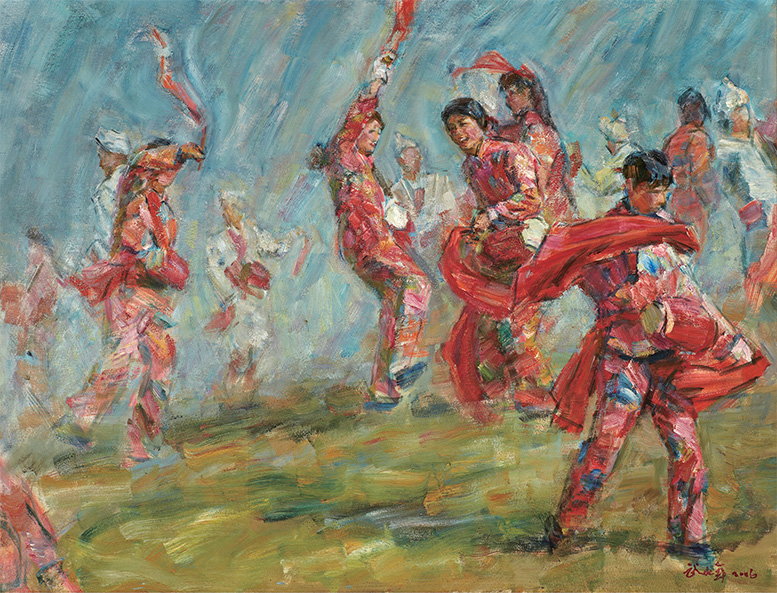 開幕式上,武永年將《信天游》等24幅作品捐獻給中國美術館永久收藏。展覽將持續(xù)至5月21日。圖為武永年作品《歡樂的女孩》。 (周 茉)