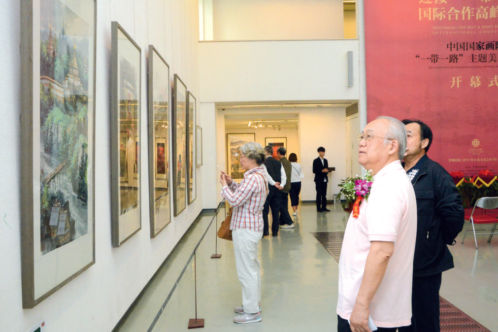 為迎接“一帶一路”國(guó)際合作高峰論壇,中國(guó)國(guó)家畫院主辦的“一帶一路”主題美術(shù)作品展5月9日至16日在中國(guó)國(guó)家畫院美術(shù)館舉行。本次展覽展出以“一帶一路”為主題的美術(shù)作品112件,其中國(guó)畫71件,油畫11件,版畫20件,公共藝術(shù)10件,既有“一帶一路”沿線地區(qū)的寫生、速寫作品,也有參與選題創(chuàng)作的初稿、創(chuàng)作作品等,涵蓋國(guó)畫、油畫、版畫、公共藝術(shù)多種類型,展示了國(guó)家畫院研究員參與“一帶一路”國(guó)際美術(shù)工程的階段性成果,是一次匯報(bào)展,也是對(duì)論壇的獻(xiàn)禮。
