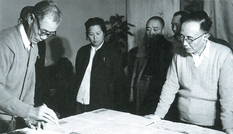1962年潘天壽與郭沫若相聚于杭州,切磋畫藝。