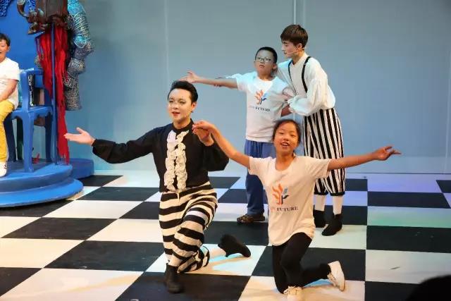 “像我這樣,把手伸起來,腳尖踮起,轉,轉,對,一二三、二二三?!薄昂?,可以開始了,現(xiàn)在正式表演,開場宮廷舞音樂,起!……”在觀演前聽導演講戲、觀演后聽主創(chuàng)談戲之后,直接上臺學戲,然后與主演一起演戲——隨著優(yōu)美的音樂響起,《李爾王》7位男演員每人手中牽著一個孩子,翩翩起舞,雖有些生澀,但孩子們舞起來也是有模有樣,這樣與戲劇親密接觸讓孩子們難掩激動,感覺不虛此行。5月22日,中國兒藝和陽光未來藝術教育基金會聯(lián)合主辦的“迎六一打工子弟公益專場演出”活動在中國兒藝小劇場舉行,由陽光未來藝術教育基金會理事長、著名主持人楊瀾帶隊,來自北京大興區(qū)西紅門鎮(zhèn)壽寶莊蒲公英中學的學生等百余名打工子弟欣賞到了中國兒藝2017年新創(chuàng)排的莎翁經典《李爾王》,而活動精心策劃的各種環(huán)節(jié)讓孩子們享受了難得的觀演經歷。