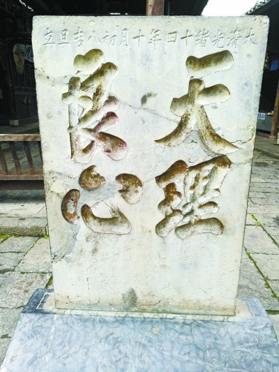 因?yàn)橛邪⑴罱@里曾是古代的交通樞紐,舟楫帆影,會(huì)于濯水;商賈鄉(xiāng)民,交易于市。顯然,這里曾經(jīng)有過非常繁華的歲月。不然,怎么會(huì)留下這么多深宅大院?樊家院子、汪家院子、龔家院子、余家院子……每個(gè)院子周邊,都是各色的店鋪,可以想見當(dāng)年的富庶與熱鬧。就在汪家院子的近旁,有一處寬敞的市場(chǎng),市場(chǎng)一側(cè),赫然豎立著一塊石碑,上面刻著“天理良心”四個(gè)蒼勁有力的大字。碑頂刻著立碑的時(shí)間:“大清光緒十四年十月初八吉旦立”。這個(gè)石碑令我眼前一亮——走過不少古鎮(zhèn),看過很多石碑,然而這樣一塊天理良心碑,我還是第一次見到。光緒十四年,即1888年,算下來這塊石碑迄今已經(jīng)129年了。歲月滄桑,天翻地覆,而這塊石碑還完好無損地存在于這偏遠(yuǎn)的大山深處,這說明什么?那一瞬間,我腦海閃過的一個(gè)念頭竟然是——“良心還在”!