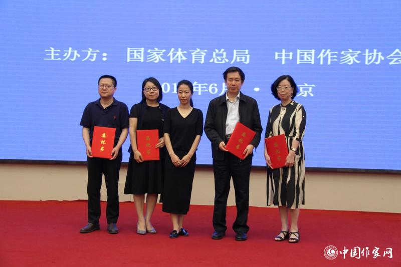 會上,國家體育總局領(lǐng)導、運動員、教練員代表向各位作家逐一遞交了創(chuàng)作委托書。體育文學作家創(chuàng)作團隊作者,體育題材創(chuàng)作運動員、教練員代表,以及體育總局機關(guān)相關(guān)司局和直屬單位領(lǐng)導參加了座談會。