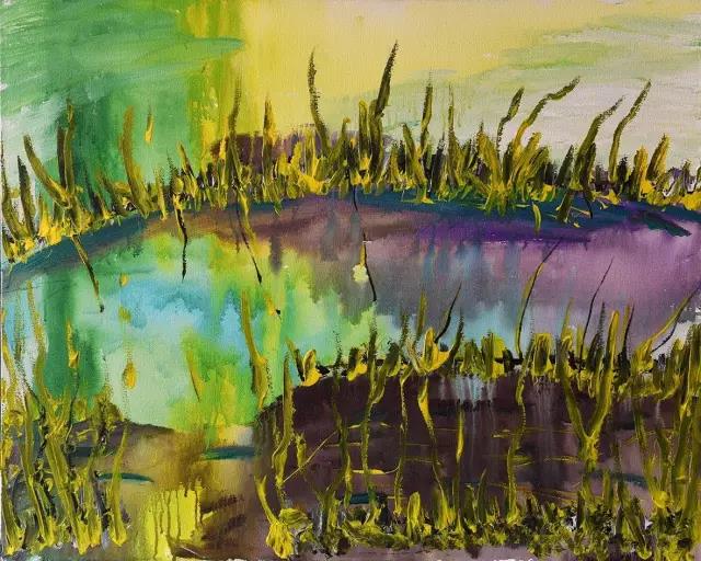 《金色池塘》100×80cm(丙烯油畫)
