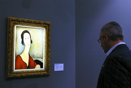 觀眾在欣賞亞美迪歐·莫迪利安尼作品《漢卡·扎博羅夫斯卡夫人》。 新華社 圖