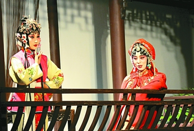 在蘇州昆劇傳習所,幾名青年演員表演實景版昆曲《牡丹亭》。王建中攝 光明圖片/視覺中國
