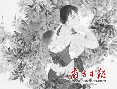 上世紀80年代,我畫了《賣花姑娘》和《冉冉》,在第六屆全國美展和第七屆全國美展都獲得了銀獎。《冉冉》畫了一個充滿朝氣的可愛嬰兒,原型是我兒子。他三個月大的時候我被派到北京搞創(chuàng)作了,當時我只畫了一個速寫稿,十年后我把這幅作品畫成國畫。這樣一個小品,去參加第七屆全國美展,很多人都說我會落選。但我很自信,我希望在那個時候給大家傳遞一種精神、一種希望,結果得了銀獎。我認為,藝術必須讓人在生活中看到希望、看到光明?!叭饺健笔钱嬜鞯拿?,寓意著生活冉冉升起的寓意。后來有位外國觀眾告訴我,整個展廳讓他印象最深的畫,就是這個小嬰兒。