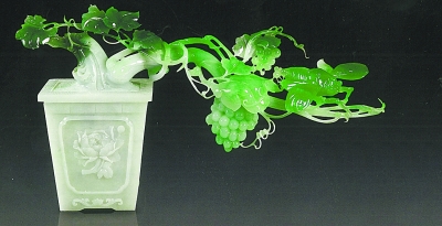 在中國(guó)的玉雕技法中,還有一項(xiàng)獨(dú)具特色,即為“俏色”。有些玉料中經(jīng)常帶有一些雜色,棄之可惜,匠人們便以雜色部分的形與色為基礎(chǔ)進(jìn)行設(shè)計(jì)。清代玉雕《翡翠蟈蟈白菜》即采用了此類技法進(jìn)行雕琢。白菜根部基本呈白色,而白菜的頂部及蟈蟈的形態(tài)運(yùn)用玉的黃、綠之色進(jìn)行表現(xiàn),塑造出了白菜被霜凍之后的質(zhì)感以及綠蟈蟈在食用白菜時(shí)的場(chǎng)面,極富自然妙趣。中國(guó)古人歷經(jīng)數(shù)千年不斷鉆研、創(chuàng)新玉石雕刻技藝,時(shí)至今日,這些技法的綜合運(yùn)用,更能烘托出玉石之美。