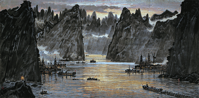 夜色如墨,他用留白與虛影映襯出光的力量,用水墨與色彩將夜幕漸漸“熄燈”。那一瞬間如同意象的通感,連結(jié)了傳統(tǒng)中國水墨與西方繪畫光影的距離,也留下了跨越中西、跨越時代的永恒藝境。