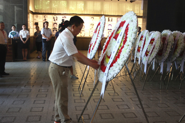 閻晶明代表采訪團(tuán)成員上前整理挽聯(lián)