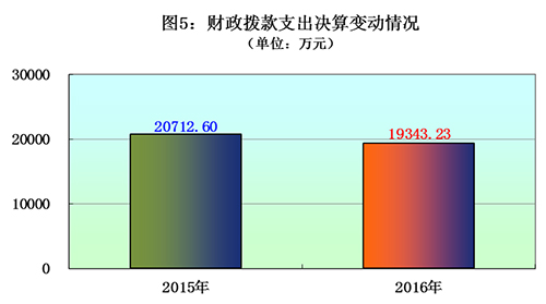 中國作協(xié)2016 年度財政撥款支出19343.23萬元, 占本年支出合計的75.45%。與 2015 年相比,財政撥款支出減少1369.37萬元,下降6.61%。