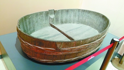 在“奪取全國解放戰(zhàn)爭勝利”展區(qū),一只看似普通的大木盆也有著一番傳奇經(jīng)歷。這只長1.7米,寬1.15米,高0.38米的大木盆,是華東野戰(zhàn)軍著名偵察英雄齊進(jìn)虎等在渡江戰(zhàn)役前夕到黑沙洲偵察敵情時(shí)用過的渡江工具。
