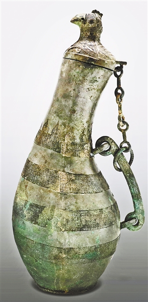 就像那只奇特的鳥蓋瓠壺,縈繞著古人的心念。它是一種動物和一種植物,即鳥和葫蘆的巧妙合體。鳥爪抓蛇,喙可開合。整壺輪廓像一只報(bào)曉雄雞,神采奕奕,恰似古天文星象中“瓠瓜星”亦即“天雞”之象,遠(yuǎn)非普通用品,而是只有特定身份才能使用的禮器,盛滿玄酒,以祀上天,“一壺在手,運(yùn)轉(zhuǎn)乾坤”。