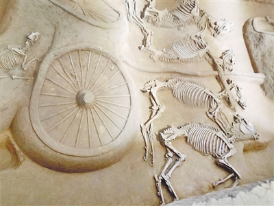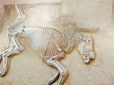 車馬坑內(nèi)完整的馬匹骨骼。