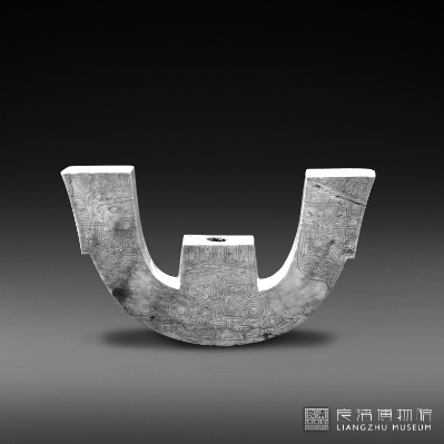 良渚遺址出土的玉質(zhì)三叉形器,出土?xí)r位于墓主人頭部,應(yīng)屬冠帽上的飾物。 (圖片來源于良渚博物院)