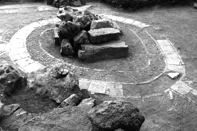 延清堂大殿遺址東北角發(fā)現(xiàn)的假山及周圍環(huán)繞的道路