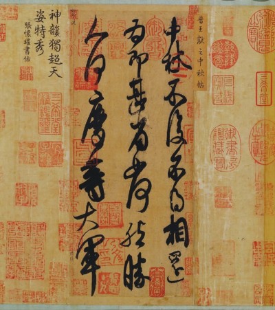 《快雪時(shí)晴帖》 是晉朝書(shū)法家王羲之的書(shū)法作品,以行書(shū)寫(xiě)成,紙本墨跡?!犊煅r(shí)晴帖》 是一封書(shū)札,其內(nèi)容是作者寫(xiě)他在大雪初晴時(shí)的愉快心情及對(duì)親朋的問(wèn)候,收藏于臺(tái)北故宮博物院。王獻(xiàn)之 《中秋帖》 又名《十二月帖》,以草書(shū)寫(xiě)成,現(xiàn)存北京故宮博物院。王珣 《伯遠(yuǎn)帖》 以行書(shū)寫(xiě)成,現(xiàn)藏于北京故宮博物院。《中秋帖》 和 《伯遠(yuǎn)帖》 在清末溥儀出宮時(shí)被帶出紫禁城,后來(lái)輾轉(zhuǎn)流傳在外,1950年購(gòu)回交與北京故宮博物院收藏。