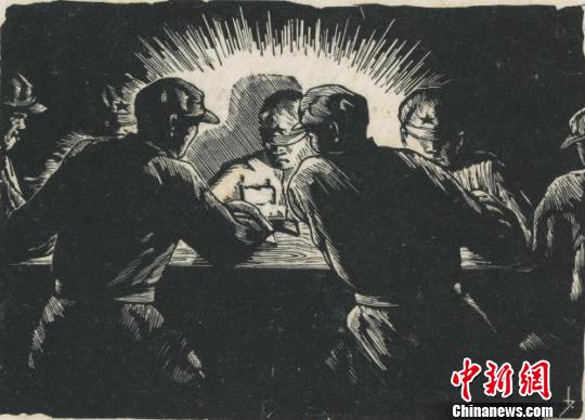 李少言創(chuàng)作于1940年的木刻版畫作品《學(xué)習(xí)》。 鐘欣 攝