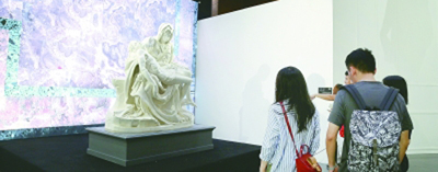 觀眾在現(xiàn)場參觀米開朗基羅雕塑復(fù)刻作品。圖片為本報記者 于園媛攝/光明圖片
