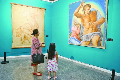 8月20日,正在鳥巢文化中心展覽的“米開朗基羅國際藝術(shù)展”展廳里,人們在靜靜觀賞。被譽(yù)為“文藝復(fù)興三杰”之一的大師有著不言自明的號召力,吸引來不少觀眾,有三五成群的年輕人、結(jié)伴而來的情侶,也有帶著孩子的父母。