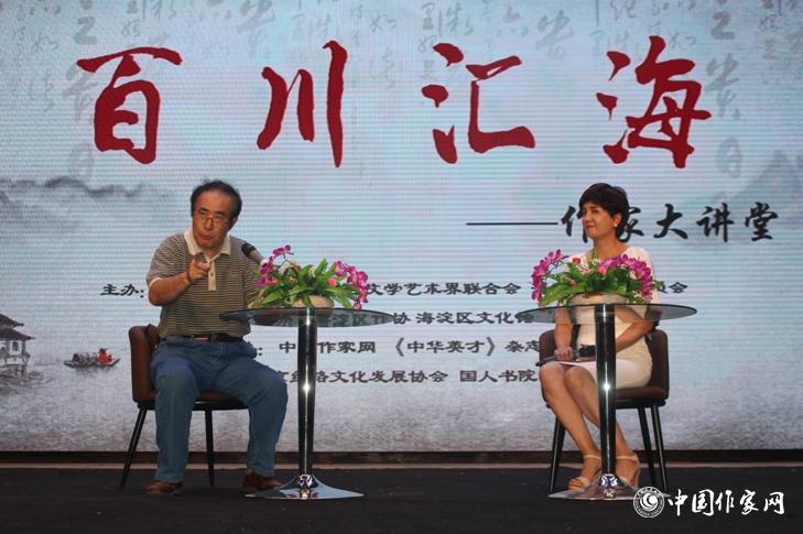 “百川匯海?作家大講堂”由北京海淀區(qū)委宣傳部、海淀區(qū)文聯(lián)、海淀區(qū)文化委主辦,海淀區(qū)作協(xié)、海淀區(qū)文化館承辦,中國(guó)作家網(wǎng)、《中華英才》雜志社、北京絲路文化發(fā)展協(xié)會(huì)、國(guó)人書(shū)院協(xié)辦,由北京大學(xué)中文系主任陳曉明,文藝?yán)碚撛u(píng)論家、首都師范大學(xué)張志忠,作家、海淀區(qū)作協(xié)主席石鐘山擔(dān)任文學(xué)顧問(wèn);由中央電視臺(tái)新聞主播崔志剛擔(dān)任藝術(shù)顧問(wèn)。講座每月一期,邀請(qǐng)活躍在當(dāng)代文壇上的著名作家、文藝?yán)碚摷摇⒏叟_(tái)作家以“師說(shuō)”的名義走上講臺(tái),追求內(nèi)容與形式的創(chuàng)新,強(qiáng)調(diào)“師者”與受眾者的互動(dòng)。自2017年6月創(chuàng)辦以來(lái),謝冕、劉慶邦、肖復(fù)興、陸天明等陸續(xù)在大講堂擔(dān)任主講,反響熱烈。
