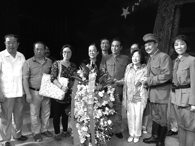 周總理在建黨建軍初期主要從事地下工作,掌握黨的大量機密,養(yǎng)成了謹言慎行的作風;新中國成立后又因日理萬機,極少談論往事,回顧自己的革命生涯。好不容易抽出時間來看舞臺上以他為主角的這臺表現(xiàn)重大革命歷史的京劇,觸景生情,不斷勾起他對戰(zhàn)斗生活的回憶。一臺戲演下來,他對一左一右坐身邊的靳玉民副市長和方華濤書記破天荒地說了許多話,提供了多處珍貴史料。比如,看到劇中把八一南昌起義指揮部設在江西大旅社,他說:“起義不是在這兒,實際是在一個天主教教會學校。不過從舞臺效果看,這樣也很好,你們就不用改了?!碑斂吹綉蛑邪涤鲝垏鵂c的副師長陳佑民對起義持消極態(tài)度,他說:“這個人很像張國燾,張國燾就那個樣兒?!毖莩鼋Y束時,他走上舞臺,不分主要演員和次要角色,也不管擁上來的是樂手,還是普通工作人員,熱情同每個人握手,以溫潤而慈愛的目光給每個真誠還原歷史的演職人員送去感激和贊許,并主動提議說:“先照個相吧?!?/p>