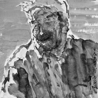 2000年,仍然是在陜北黃河邊的一個村莊,正在寫生的他手邊沒水了,一時興起,便用焦墨畫了一幅人物。