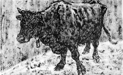 他的寫生冊里,至少有成百上千頭形態(tài)各異的牛。其中最讓他感動的,是鄰居家的老黃牛。這頭老黃牛每天都從梁建平的窯洞前走過,來來去去,每次路過都會抬起頭望他一眼,而他也友好地報以微笑,再抓一把草料喂牛幾口。幾個月過去,老黃牛成了他親近的朋友,梁建平幾乎毫不費(fèi)力地為這位“朋友”畫了一幅作品。沒想到,一位美國歸來的女士看到這幅畫時,看著看著竟潸然淚下。原來,這位女士曾經(jīng)下過鄉(xiāng),畫作中黃牛那生動傳神的眼睛,一不小心就觸動了她深藏內(nèi)心的過往歲月……