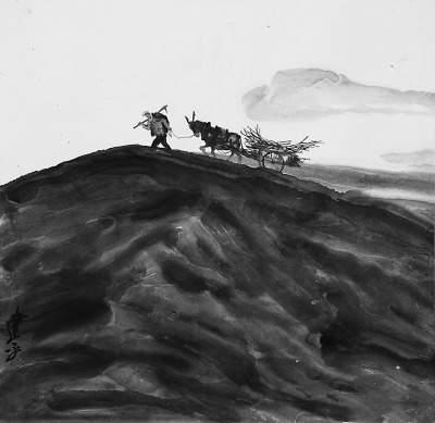 所謂焦墨,就是不摻水的水墨,不摻水,自然就沒那么流暢唯美,反給人樸素滄桑之感。梁建平原是隨手而畫,不料,旁邊圍觀的老漢卻連連點(diǎn)頭:“這才像我們受苦人!”梁建平不禁為之一動:焦墨的枯澀,不正好與黃河邊歷經(jīng)磨難的老百姓相契合嗎?