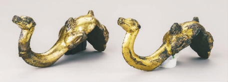 鎏金青銅駱駝形鈕鐘架構(gòu)件(西漢)