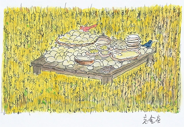 再來(lái)一次競(jìng)賽會(huì)怎樣?麥地里的板桌,邁開(kāi)四條腿,像馬匹一樣漸漸朝這里走來(lái)…… (出自《方島》)