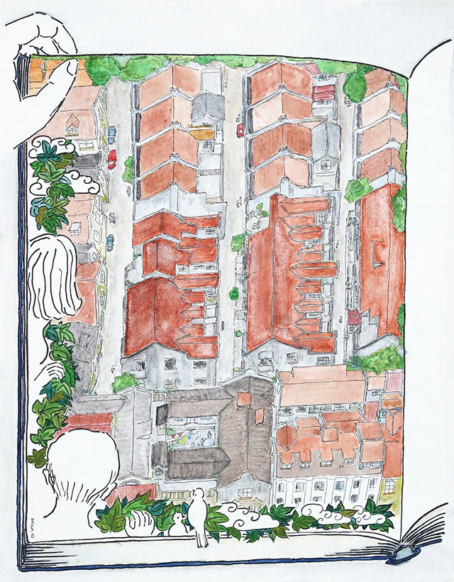 敘事形成的焦慮,到此安靜下來(lái)了,仿佛一切都落定了,出現(xiàn)了固定的線條,種種細(xì)部暈染,小心翼翼,大大咧咧,都促使我一直畫(huà)下去,直到完成。這個(gè)狀態(tài),四周比寫(xiě)作時(shí)間更幽暗,更單純、平穩(wěn),仿佛我在夢(mèng)中。