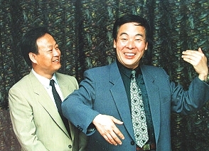 王謙祥:對(duì),我覺(jué)得因?yàn)槲覀儗W(xué)的跟其他好多人、包括和我們年齡差不多的演員學(xué)的都不一樣。我們是科班,所以從小就養(yǎng)成了那么一種習(xí)慣。我們每次請(qǐng)馬季先生給我們看看節(jié)目,都是先生坐那兒,我們倆規(guī)規(guī)矩矩站著說(shuō)。必須得拿師父當(dāng)師父,你才能說(shuō)好相聲;拿師父不當(dāng)師父,或者你根本就不說(shuō),坐那兒念本子,這念不出味兒來(lái),因?yàn)檫@里頭除了人家寫出來(lái)的東西,還需要你的感情,你的體會(huì),通過(guò)你的表演來(lái)表演出來(lái)。只有這樣才能看出問(wèn)題。我們倆自己覺(jué)得自己做得還算行吧,所以先生也挺滿意的,他的要求比較寬松,對(duì)我們倆也特殊一點(diǎn)兒。