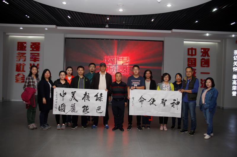在黨的十九大召開前夕,應(yīng)中國核工業(yè)集團(tuán)公司的邀請,中央企業(yè)書法專業(yè)委員會的書法家們于2017年9月16日至2017年9月25日與中核集團(tuán)共同開展“綠色核能 美麗中國”——中核集團(tuán)第三屆“核你在一起”科普開放周暨“翰墨飄香送文化 丹青溢彩央企情”活動。書法家們在零距離的接觸到核領(lǐng)域的重點(diǎn)工程項目并且領(lǐng)略到核電人的敬業(yè)精神的同時,也向偉大的核電事業(yè)工作者們表示慰問和敬意。