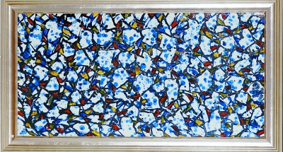 鑒于此,我的瓷畫創(chuàng)作是以要傳統(tǒng)為基礎的,但僅僅要傳統(tǒng)是遠遠不夠的,要傳統(tǒng)只是前提基礎,不是目的;突破傳統(tǒng),創(chuàng)新突破才是目的。因此還必須與“要現(xiàn)代”結(jié)合起來?!耙F(xiàn)代”就是要發(fā)揮傳統(tǒng)基因,表現(xiàn)現(xiàn)代審美,更新藝術(shù)觀念,構(gòu)建新的形式。以“不與人同”的方式,尋找新的意、新的境、新的形、新的線。具體到創(chuàng)作中,就是以現(xiàn)代的觀念篩選民族藝術(shù)中的現(xiàn)代因子,以民族的視角汲取西方現(xiàn)代藝術(shù)中符合民族審美的有益元素。所以在我的創(chuàng)作語言里,滿構(gòu)圖、平面化、構(gòu)成性、等值性、裝飾性就成了我追求現(xiàn)代形式感的要素。凡是具有感染力的作品,其現(xiàn)代形式都是新穎的、鮮明的、強烈的、震撼的;看了使人耳目一新,為之一震,給人以視覺上乃至心靈上特別的沖擊。