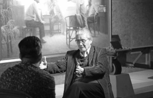 表演藝術(shù)家藍(lán)天野接受《百年巨匠》攝制組采訪。資料圖片