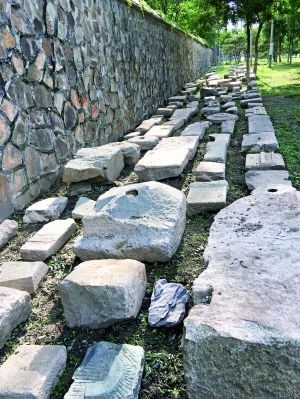 與圓明園周邊區(qū)域的搬遷騰退同步,圓明園專(zhuān)門(mén)成立了文物回收工作組,到目前為止已收回虎皮石、石構(gòu)件、城磚等文物8萬(wàn)余件,在園內(nèi)形成了兩道壯觀的“文物長(zhǎng)城”。