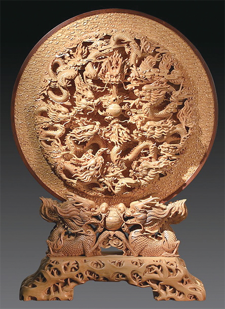 在中國(guó)國(guó)家博物館館長(zhǎng)呂章申看來(lái),黃小明的木雕藝術(shù)在國(guó)博展出,不僅是對(duì)東陽(yáng)木雕歷史性發(fā)展成就的具體展示,也是對(duì)其本人木雕藝術(shù)的肯定與褒獎(jiǎng),為中國(guó)傳統(tǒng)工藝的傳承發(fā)展提供了一個(gè)獨(dú)特的視角。黃小明坦言:“傳承木雕傳統(tǒng)工作技藝、通過(guò)傳幫帶把下一代從業(yè)者帶得更好,同時(shí)借助這個(gè)展覽讓更多人關(guān)注東陽(yáng)木雕并從事這個(gè)行業(yè),是我最大的希望?!?/p>