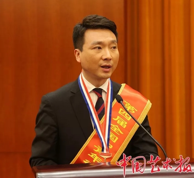 康輝在第四屆全國中青年德藝雙馨文藝工作者表彰大會上發(fā)言 中國藝術報記者 孟祥寧 攝