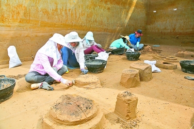 考古人員在發(fā)掘出土臨時(shí)性建筑遺址。李鵬攝/光明圖片