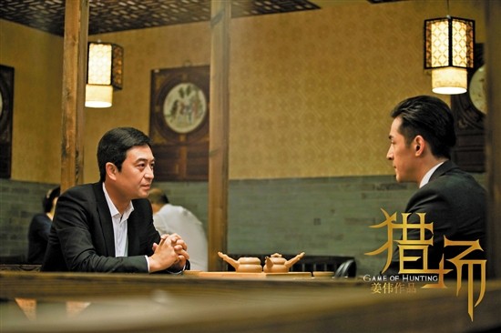 胡歌:張嘉譯,我第一次跟他合作《四十九日祭》的時候就很有壓力。而且我媽媽是他的粉絲,我跟他還不認(rèn)識的時候就一直作為粉絲看他的作品。這次拍《獵場》,正好把壓力放到人物關(guān)系里了。因?yàn)槲已莸泥嵡锒且粋€獵頭,希望“獵”他去一個民營公司,但見面時被他的氣場壓著。我就正好把生活中的感受放到人物里去了。