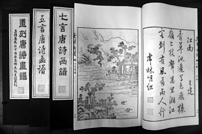 昨天,16開線裝、全一函四冊的《重刻唐詩畫譜》正式面世,該書共印500套,其中藍印本100套、紅印本200套、黑印本200套。這也是《唐詩畫譜》自明萬歷年間問世以來,400年之后的首次重刻。