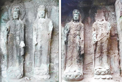 四川省安岳縣木魚(yú)山摩崖造像千年佛頭被盜前后。 資料圖片